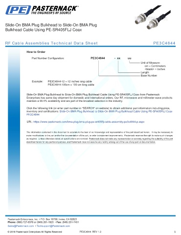 any representation or warranty regarding the suitability of the part described herein for any particular purpose, and Pasternack does not assume any liability arising out of the use of any part or documentation.