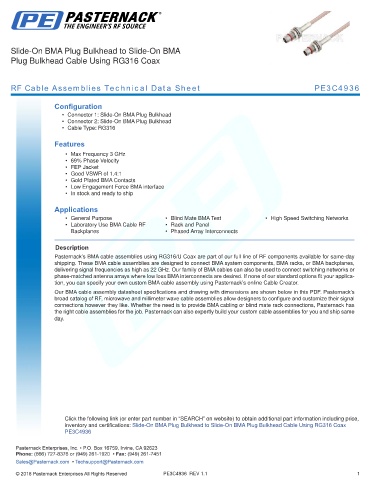 RF Cable Assemblies Technical Data Sheet PE3C4936
