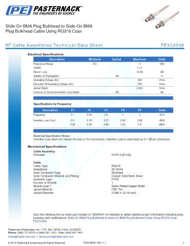 RF Cable Assemblies Technical Data Sheet PE3C4936