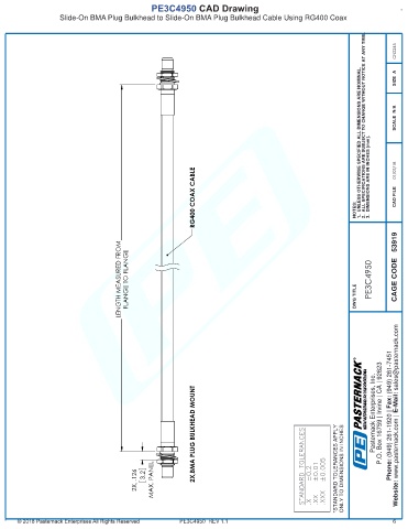 *STANDARD TOLERANCES APPLY ONLY TO DIMENSIONS IN INCHES Pasternack does not make - Website: www.pasternack.com |
