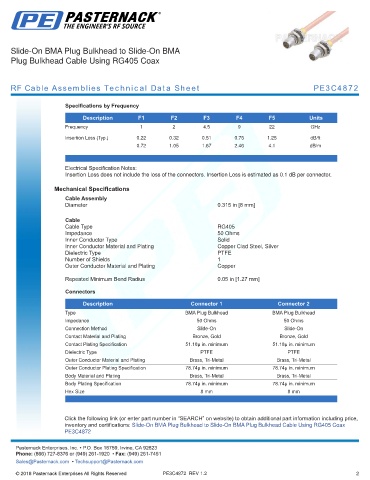 RF Cable Assemblies Technical Data Sheet PE3C4872