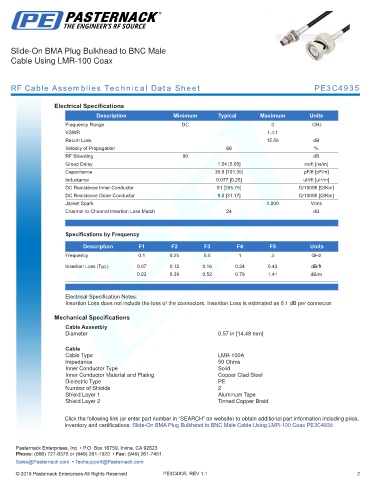 RF Cable Assemblies Technical Data Sheet PE3C4935