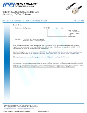 any representation or warranty regarding the suitability of the part described herein for any particular purpose, and Pasternack does not assume any liability arising out of the use of any part or documentation.