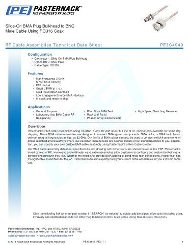 RF Cable Assemblies Technical Data Sheet PE3C4949