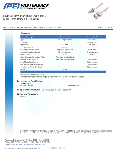 inventory and certifications: Slide-On BMA Plug Bulkhead to BNC Male Cable Using RG316 Coax PE3C4949