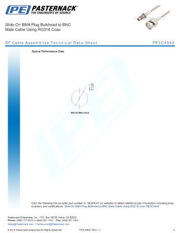 any representation or warranty regarding the suitability of the part described herein for any particular purpose, and Pasternack does not assume any liability arising out of the use of any part or documentation.