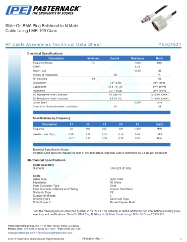 RF Cable Assemblies Technical Data Sheet PE3C4931