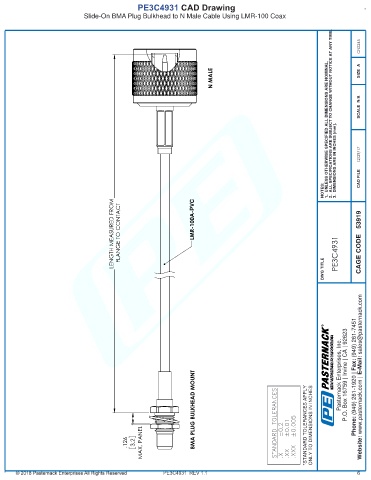 any representation or warranty regarding the suitability of the part described herein for any particular purpose, and Pasternack does not assume any liability arising out of the use of any part or documentation. -