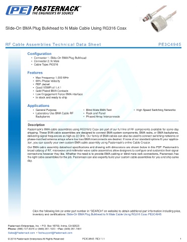 RF Cable Assemblies Technical Data Sheet PE3C4945
