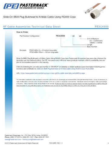 any representation or warranty regarding the suitability of the part described herein for any particular purpose, and Pasternack does not assume any liability arising out of the use of any part or documentation.
