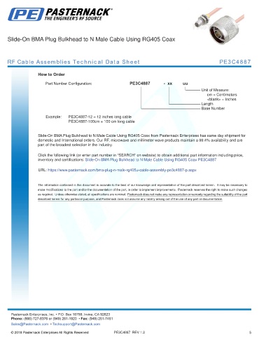 RF Cable Assemblies Technical Data Sheet PE3C4887