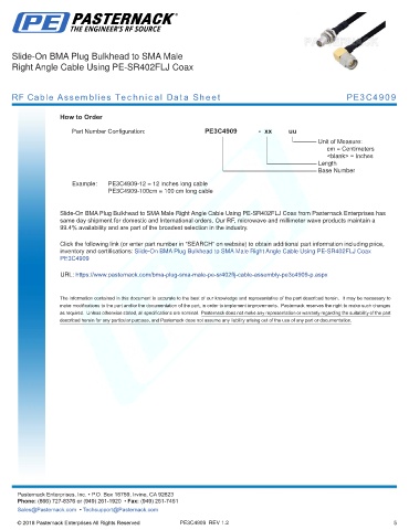 any representation or warranty regarding the suitability of the part described herein for any particular purpose, and Pasternack does not assume any liability arising out of the use of any part or documentation.