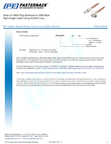 any representation or warranty regarding the suitability of the part described herein for any particular purpose, and Pasternack does not assume any liability arising out of the use of any part or documentation.