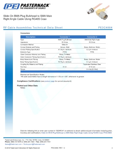 RF Cable Assemblies Technical Data Sheet PE3C4884