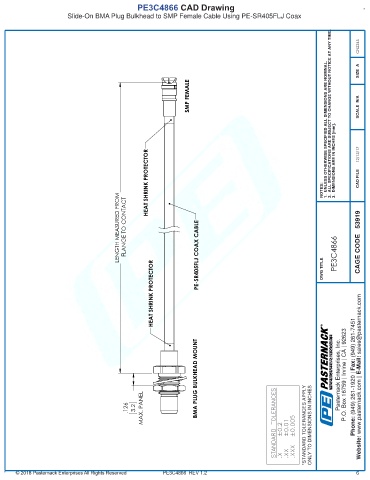 any representation or warranty regarding the suitability of the part described herein for any particular purpose, and Pasternack does not assume any liability arising out of the use of any part or documentation. -