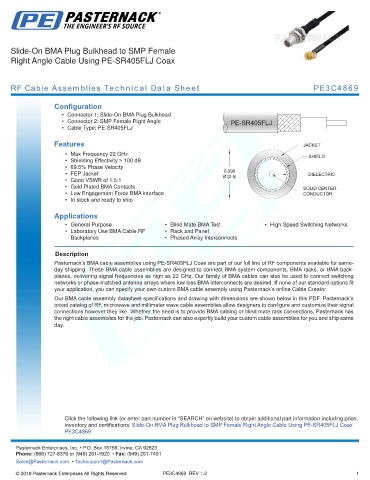 RF Cable Assemblies Technical Data Sheet PE3C4869