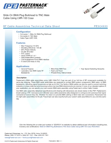 RF Cable Assemblies Technical Data Sheet PE3C4933