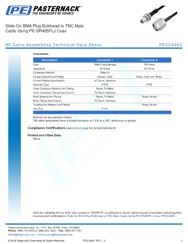 RF Cable Assemblies Technical Data Sheet PE3C4863