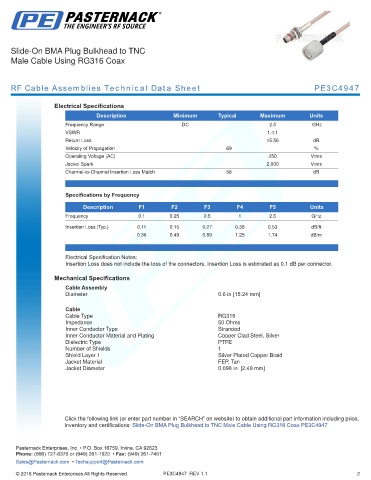 RF Cable Assemblies Technical Data Sheet PE3C4947