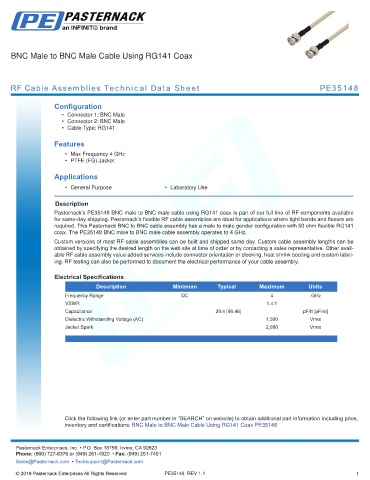 RF Cable Assemblies Technical Data Sheet PE35148