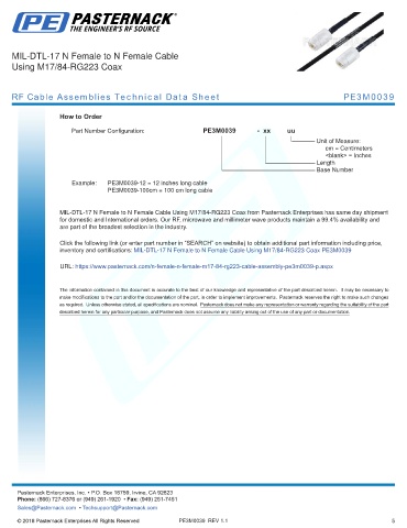 any representation or warranty regarding the suitability of the part described herein for any particular purpose, and Pasternack does not assume any liability arising out of the use of any part or documentation.