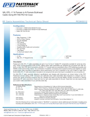 RF Cable Assemblies Technical Data Sheet PE3M0012