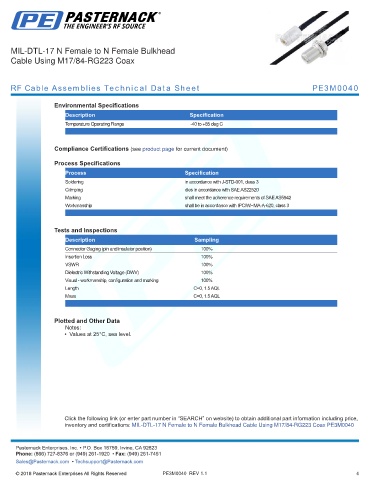 RF Cable Assemblies Technical Data Sheet PE3M0040