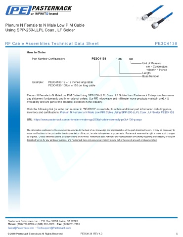 RF Cable Assemblies Technical Data Sheet PE3C4138