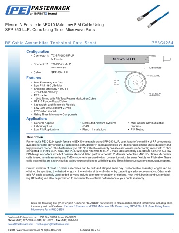 corrugated SPP-250-LLPL coax. The PE3C6254 type N female to NEX10 male cable assembly operates to 5.8 GHz. Our low
