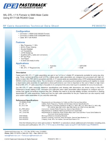RF Cable Assemblies Technical Data Sheet PE3M0073