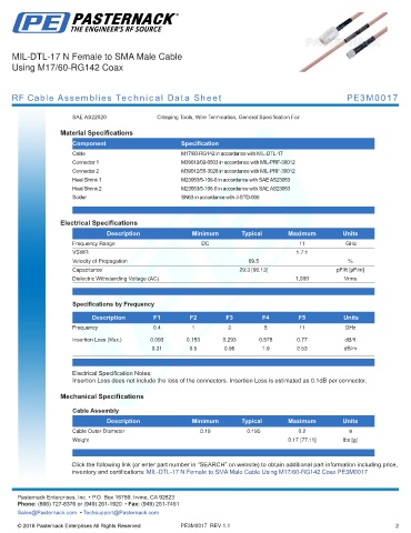 RF Cable Assemblies Technical Data Sheet PE3M0017