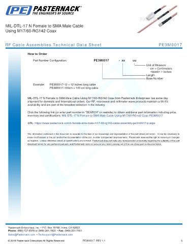 any representation or warranty regarding the suitability of the part described herein for any particular purpose, and Pasternack does not assume any liability arising out of the use of any part or documentation.