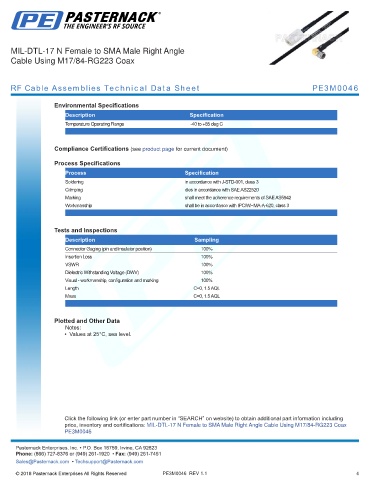 RF Cable Assemblies Technical Data Sheet PE3M0046