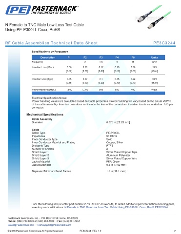 RF Cable Assemblies Technical Data Sheet PE3C3244
