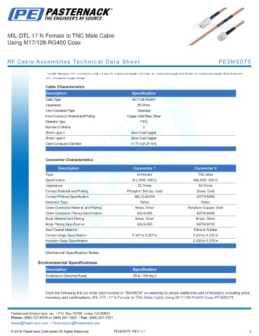 RF Cable Assemblies Technical Data Sheet PE3M0075