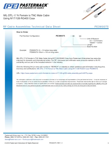 RF Cable Assemblies Technical Data Sheet PE3M0075