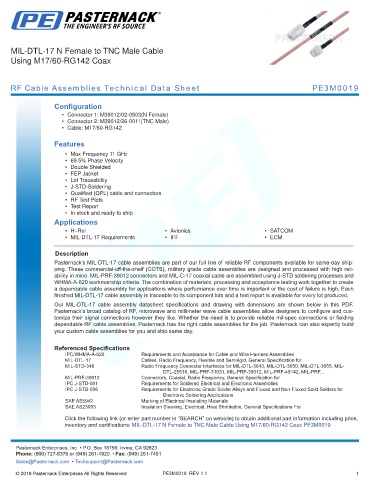 RF Cable Assemblies Technical Data Sheet PE3M0019