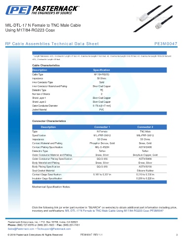 RF Cable Assemblies Technical Data Sheet PE3M0047