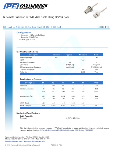 RF Cable Assemblies Technical Data Sheet PE3C3416