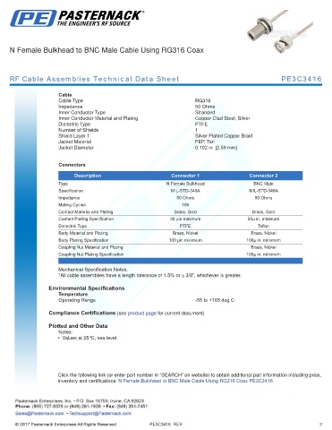 RF Cable Assemblies Technical Data Sheet PE3C3416
