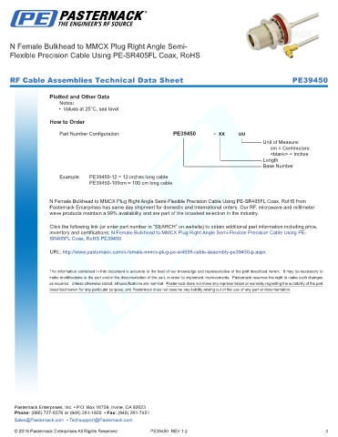 RF Cable Assemblies Technical Data Sheet PE39450