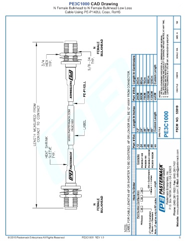 PE3C1000 CAD Drawing N Female Bulkhead to N Female Bulkhead Low Loss Cable Using PE-P142LL Coax, RoHS PE3C1000 REV 1.0 5