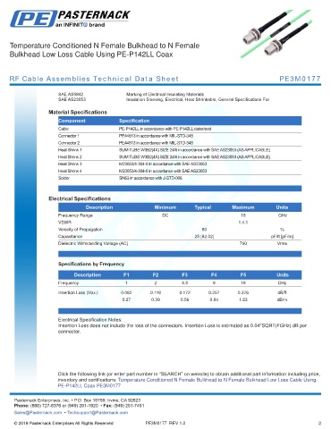 RF Cable Assemblies Technical Data Sheet PE3M0177