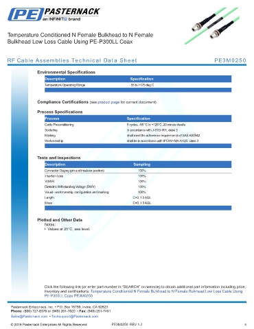 RF Cable Assemblies Technical Data Sheet PE3M0250