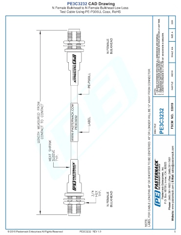 PE3C3232 CAD Drawing N Female Bulkhead to N Female Bulkhead Low Loss Test Cable Using PE-P300LL Coax, RoHS PE3C3232 REV 1.0 5