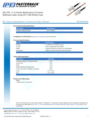 RF Cable Assemblies Technical Data Sheet PE3M0069