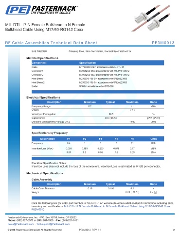 RF Cable Assemblies Technical Data Sheet PE3M0013