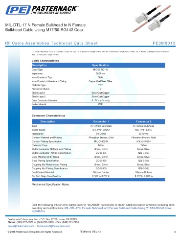 RF Cable Assemblies Technical Data Sheet PE3M0013