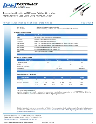 RF Cable Assemblies Technical Data Sheet PE3M0251