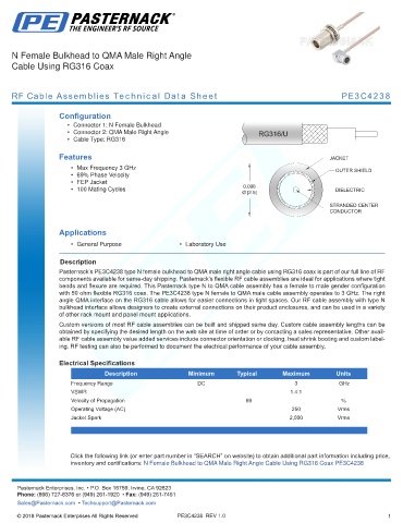 RF Cable Assemblies Technical Data Sheet PE3C4238